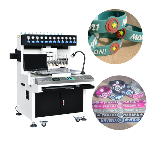 To produce Soft PVC bracelets, the typical equipment includes a PVC dispensing machine, combined with a tunnel oven for curing and a demolding workstation. This setup provides high automation and stable production efficiency.